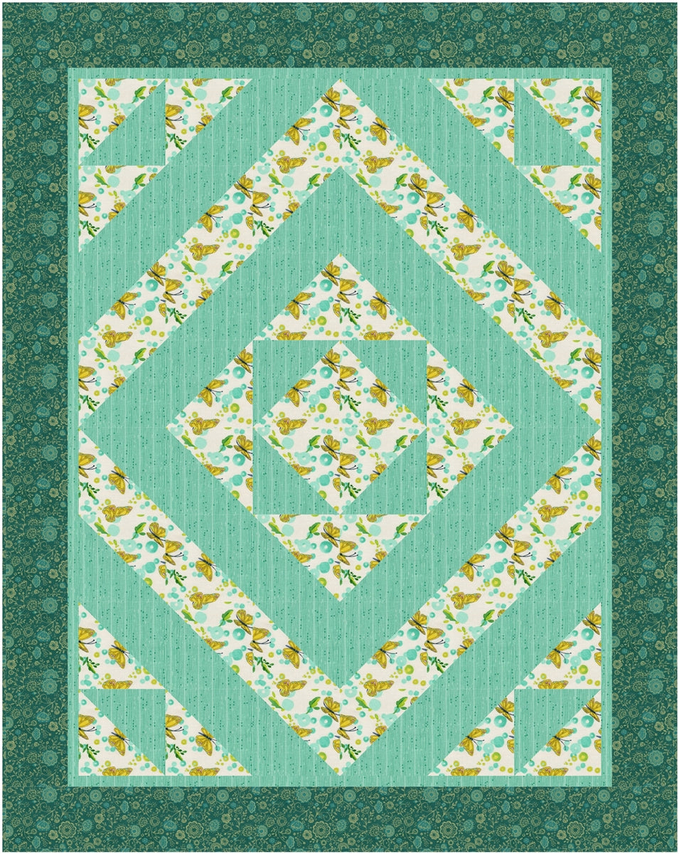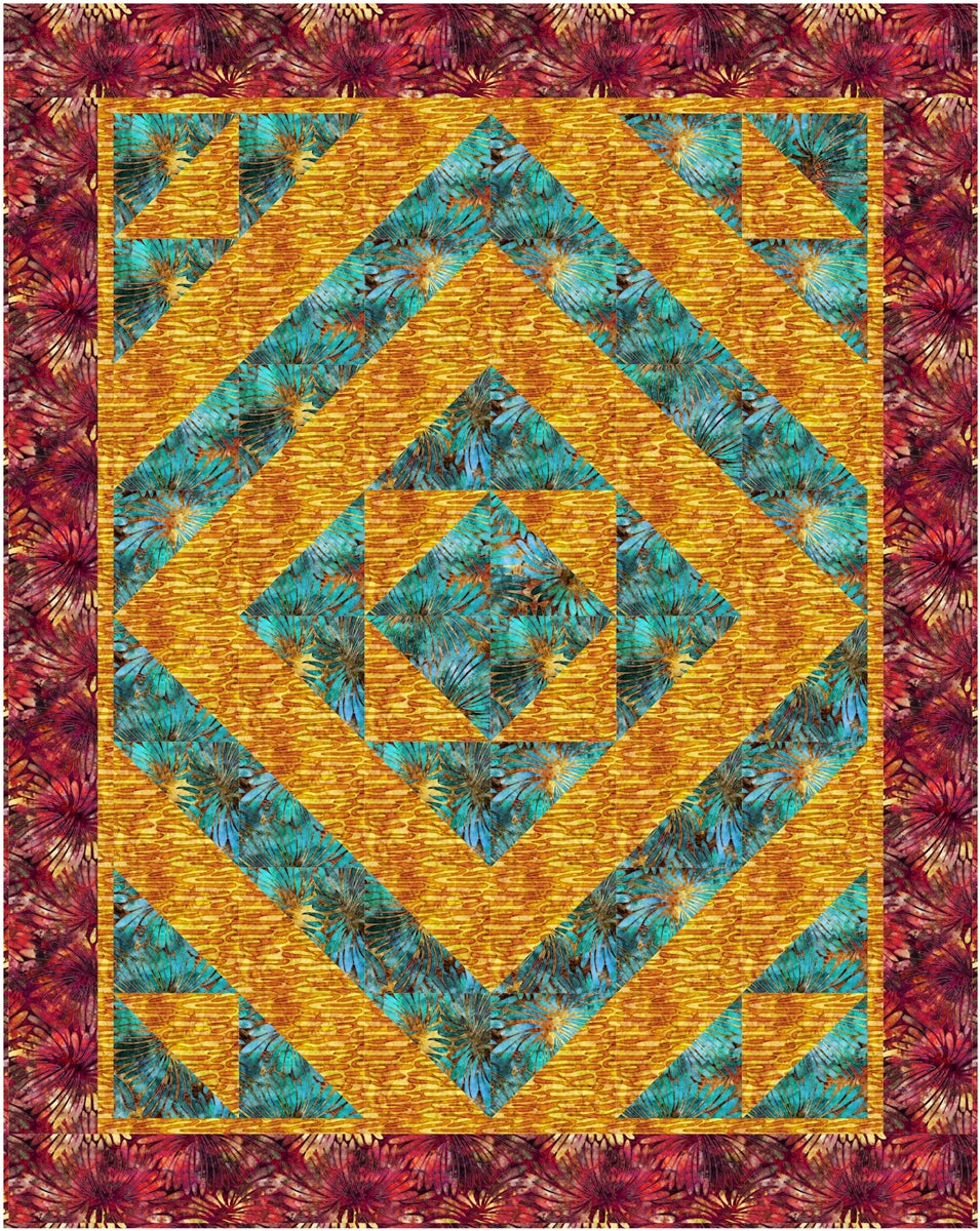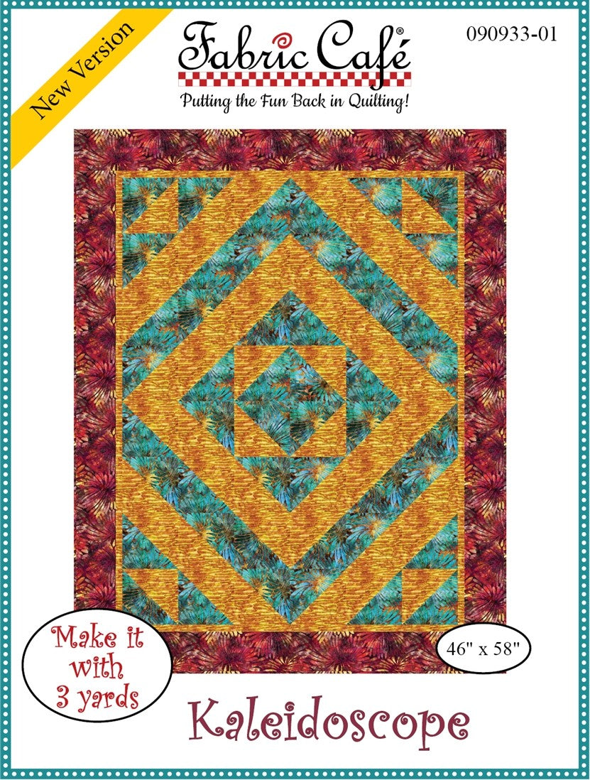 | Kaleidoscope - 3-Yard Quilt PatternWith this Kaleidoscope pattern, you simply take 3, one-yard cuts of fabric plus a few hours and make a beautiful quilt top with binding and borders. The pattern includes an assembly diagram and step-by-step directions that make your cutting and piecing a breeze! Finished size of quilt: 46 x 58 inches (116.84 x 147.32 cm) |