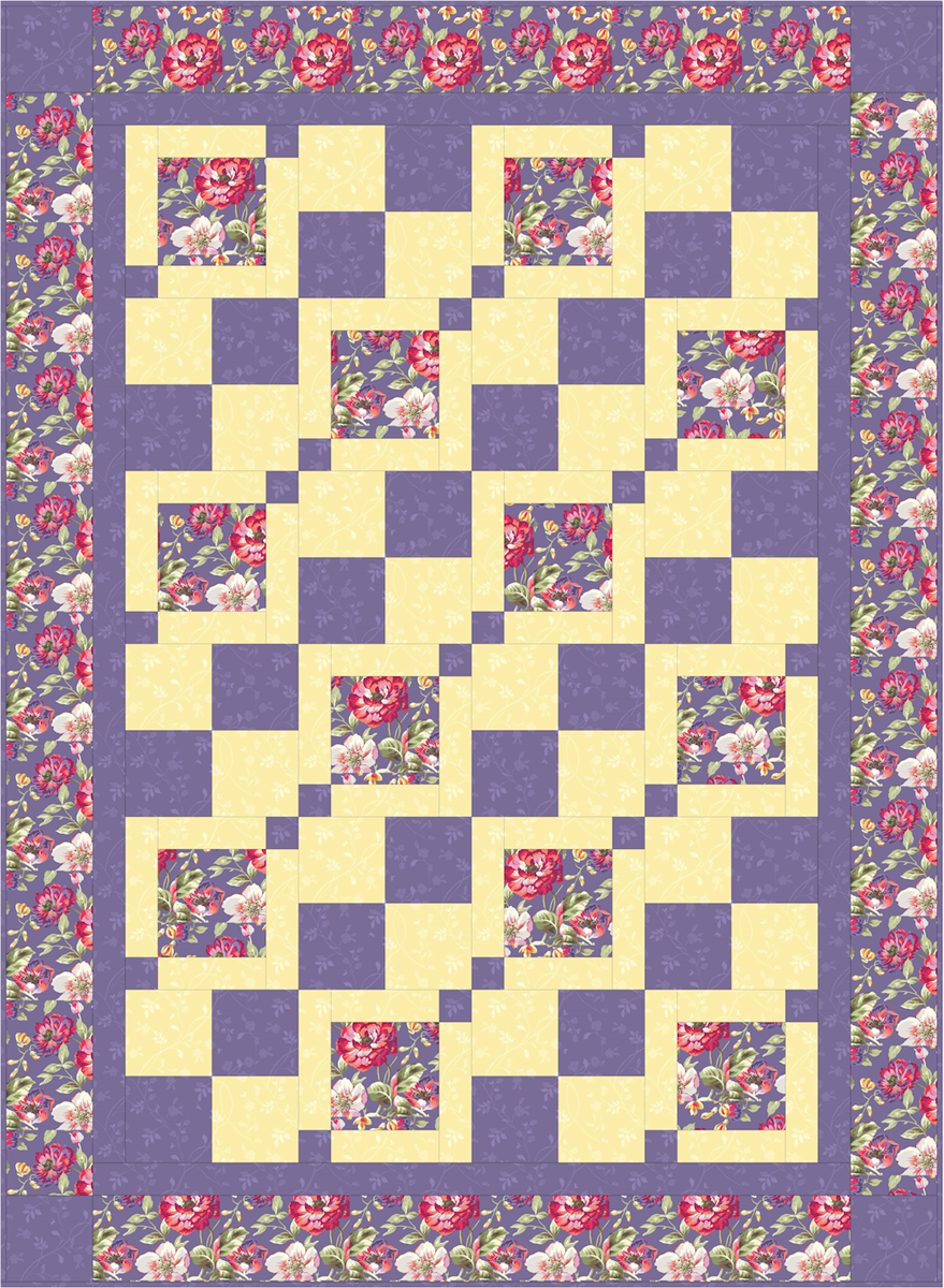 These individual 3-yard quilt patterns from Fabric Café are the perfect solution for quick and easy quilting. Each printed pattern is designed to use just three 1-yard cuts of 44/45" fabric—making it simple to choose fabric and start sewing without the stress of complicated math or cutting.